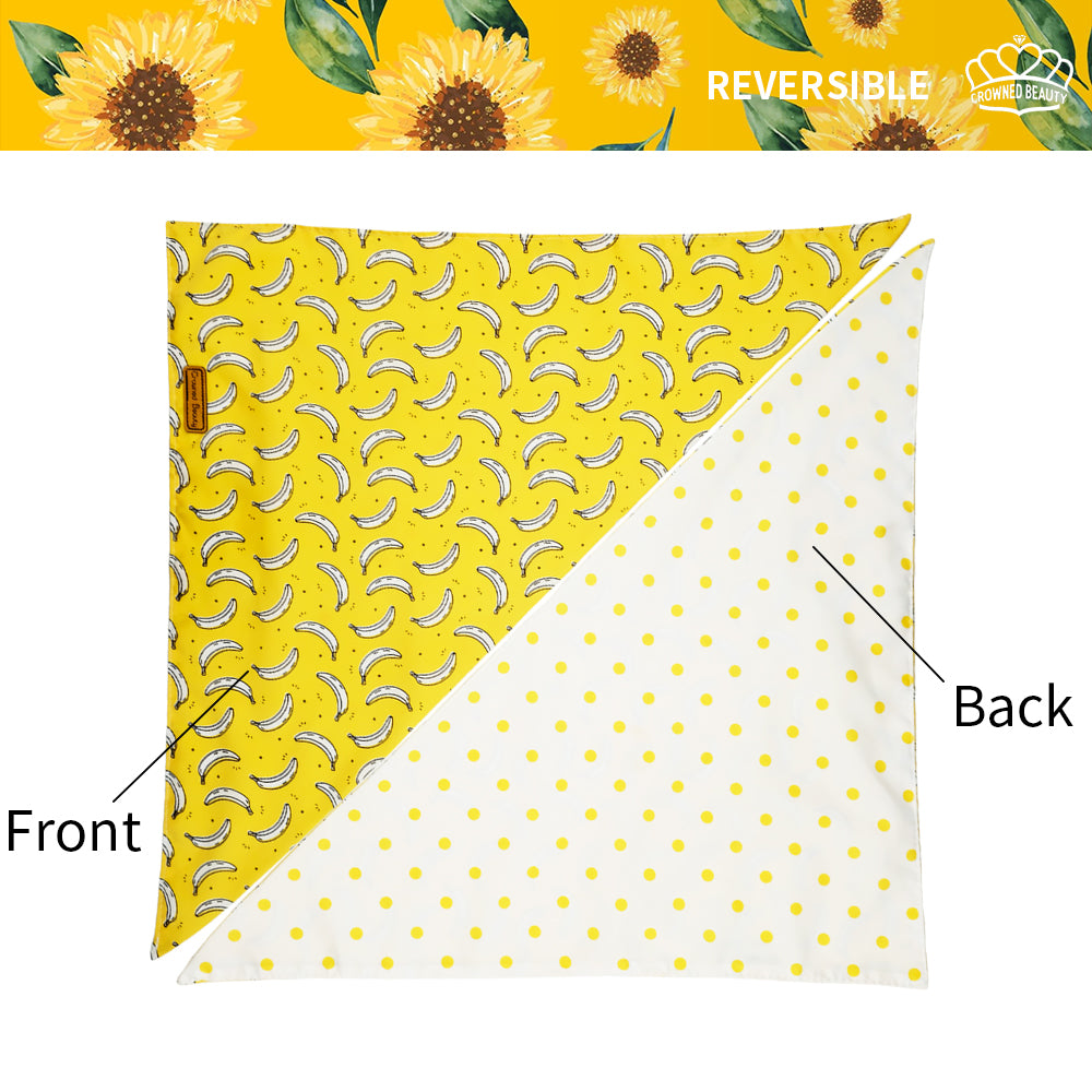CROWNED BEAUTY Fruit Dog Bandanas Reversible Grande 2 Pack, Banana Set, DB63-L