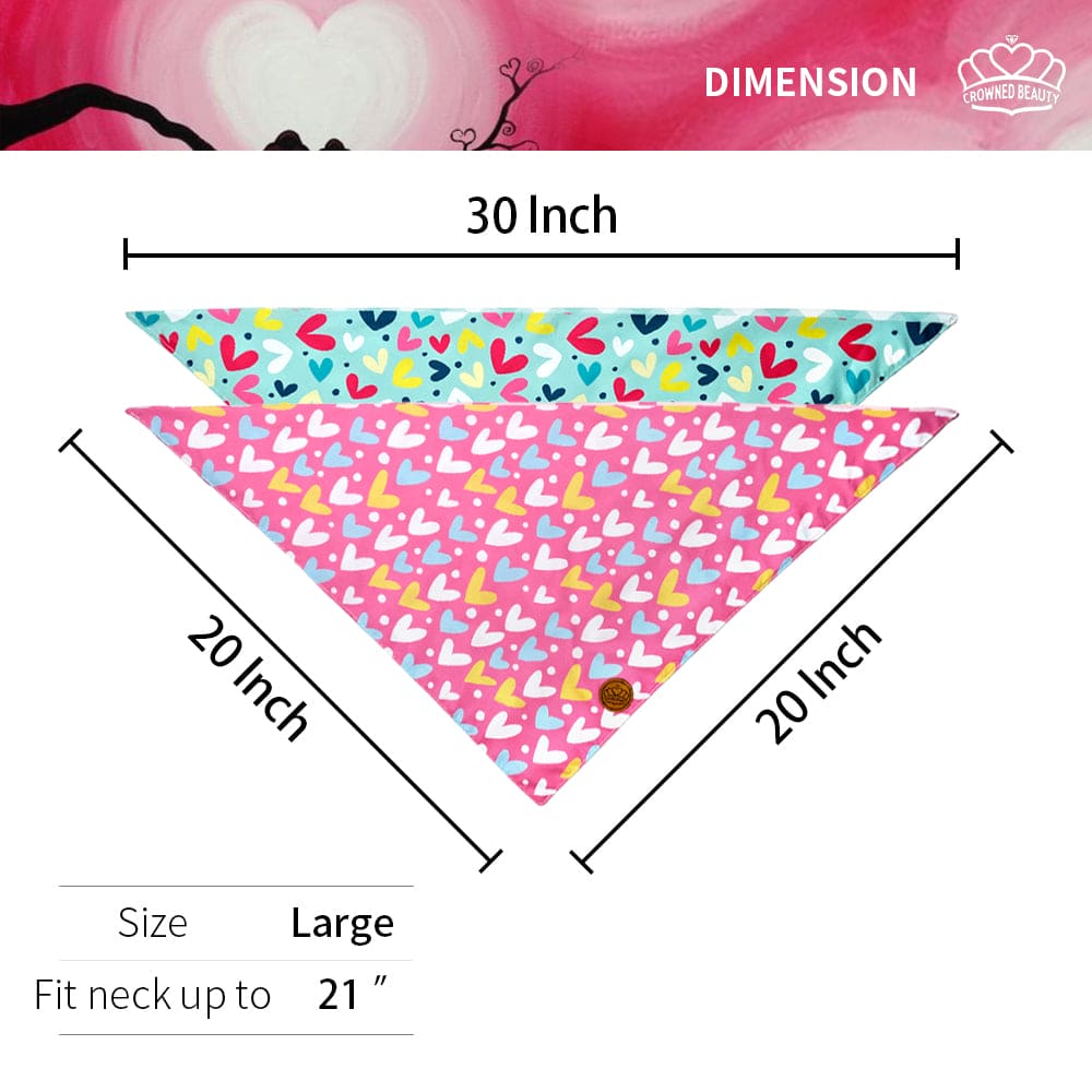 CROWNED BEAUTY Reversible Valentines Day Dog Bandanas -Love Heart Set- 2 Pack for Medium to XL Dogs DB90